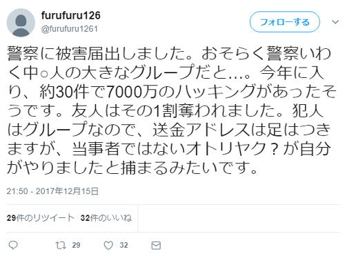 出金されたというメールは深夜の1時に届いており、被害者によると700万円分がビットコインに変えられて送金されたようだ。