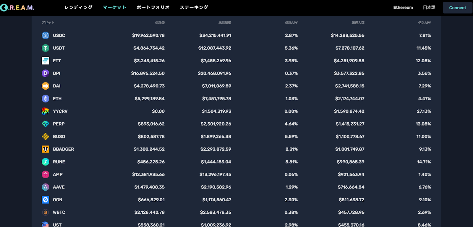 次に同じくDeFiのレンディングサービス C.R.E.A.M. Financeです。