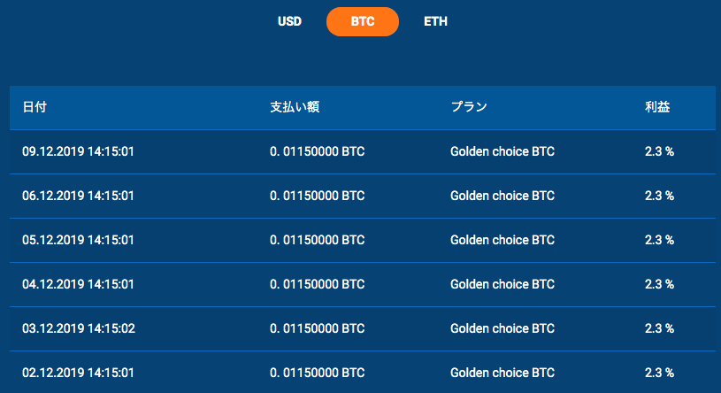 (ここではBTCのプランを例にご紹介します。USD/ETHも同様なプラン体制になります)