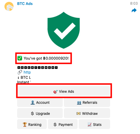 あとは真ん中のボタン「View Ads」を押すだけ(30秒ごと)