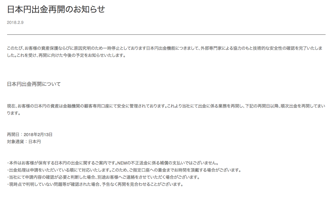 関連:【速報】コインチェック、出金再開を発表。申請順に13日から日本円を出金へ : IT速報