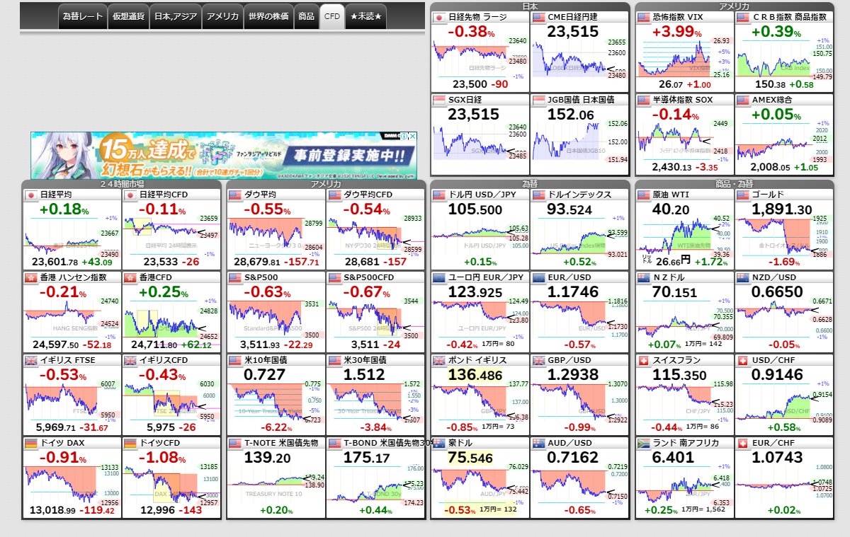 【アジア株価先物・為替・商品・仮想通貨】【2020年10月14日(水)朝6:05】