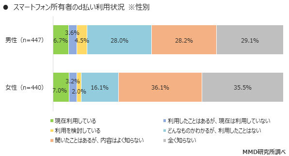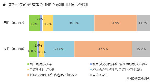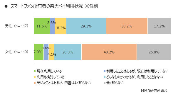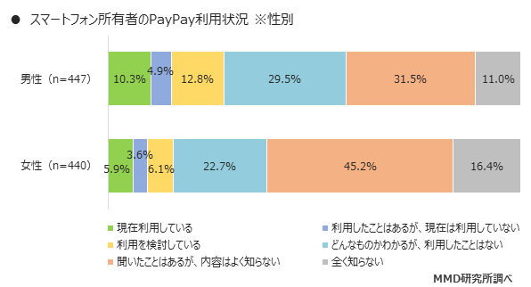 2位は「PayPay」(8.1%)、3位は「LINE Pay」(7.9%)だった。トップの「楽天ペイ」でも利用者や利用を検討しているユーザーは19.2%に留まるなど、各サービスで半数以上のユーザーが「聞いたことはあるが、内容はよく知らない」「全く知らない」と回答しており、未だに認知率は低い。