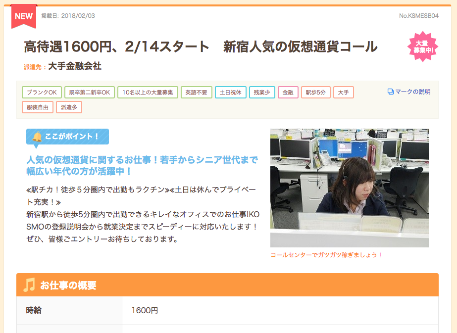高待遇1600円、2/14スタート 新宿人気の仮想通貨コール