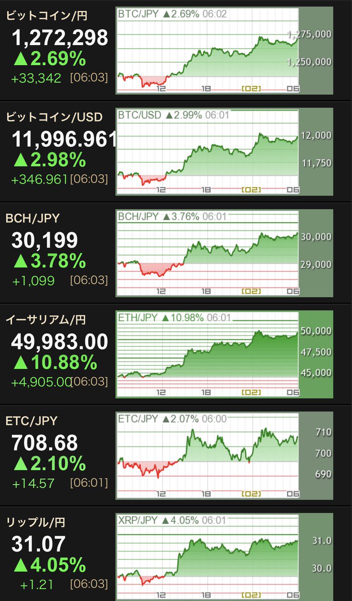 今日は仮想通貨(暗号資産)の伸びもすごいですね。イーサリアム10%超!