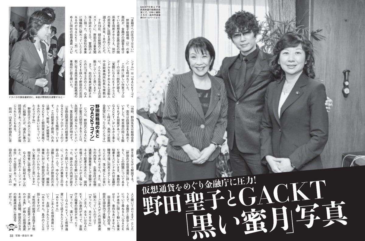 【GACKTコインと野田聖子】野田聖子事務所が、金融庁の調査を受けていた仮想通貨企画会社の関係者を同席させ担当者から説明を求めてた問題。某自民党議員「この経営者と野田さんの夫は親しく、野田さんが結婚後は、GACKTと野田家は家族ぐるみのつき合い」