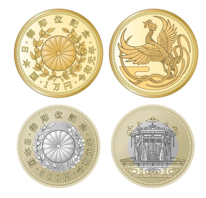 天皇陛下の御即位を記念した記念貨幣が発行されます。額面1万円と500円、2種類の硬貨です。