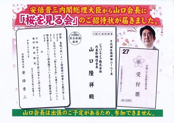 日刊ゲンダイは昨年末、磁気治療器の預託商法を展開し、2017年末に倒産した「ジャパンライフ」の山口隆祥元会長が桜を見る会に招待されていたことを報じた。