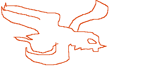 ドラゴンの上顎が頭と胴体、鼻の穴が目、髭が翼、角が尻尾、頬と下顎が脚