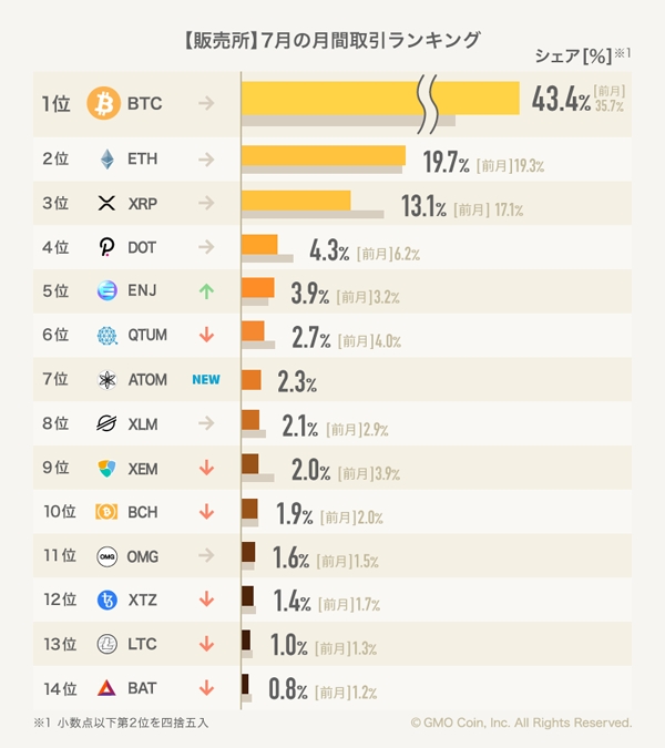 GMOコイン、7月の暗号資産(仮想通貨)取引ランキングを発表