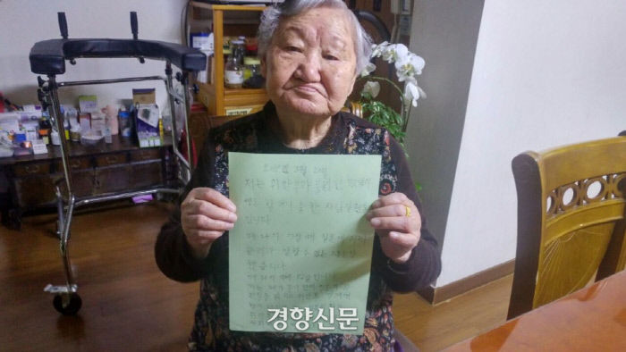 時には内容をすべて見なくても伝えたいことが分かる時があります。びっしり書かれた文字から感じられる真心と差出人の名前が全てを説明するからです。去る20日、京郷新聞に届いた一通の手紙がそうでした。手紙を送った人物は1927年、平壌(ピョンヤン)で生まれました。13才になった年、軍人によって強制的に引きずられて行った戦場で想像もできない苦痛を味わいました。