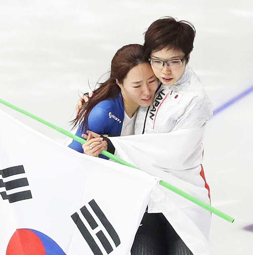 家族3人で西部の全州から会場を訪れた自営業者の安石鎮さん(43)は「3連覇の期待もあったが、最後まで美しく滑り終えてほしいという思いが強かった」。南部の釜山から来た高校生、許瑞倫さん(16)は競技後、小平選手と李選手がそれぞれの国旗をまとって一緒にリンクを回ると「良かった」と目を潤ませた。