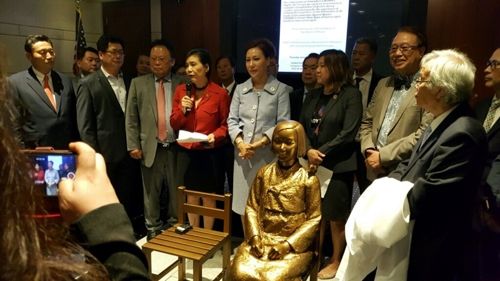 メン議員も「一人の女性として慰安婦問題の痛みに共感する」として「今日、少女像展示を基点に彼女たちの痛みを永遠に記憶していこう」と話した。