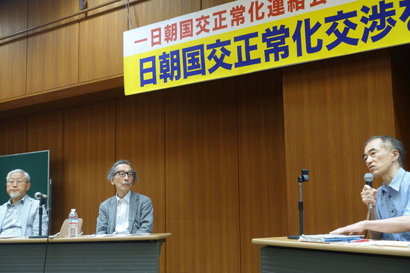 ▲和田春樹東京大学名誉教授(中央)が今月25日、市民団体の日朝国交正常化連絡会が開いた「日朝国交正常化交渉を再開せよ」討論会に出席している//ハンギョレ新聞社