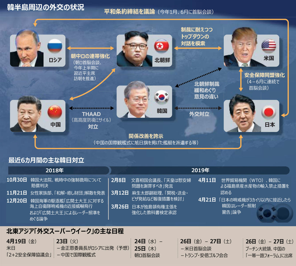 今週は米中日ロと北朝鮮が参加する外交日程が相次ぐ予定だが、韓国だけが「舞台」に上がれずにいる。韓国政府は北朝鮮非核化交渉で「仲裁者」役にこだわり、外交の「スーパーウイーク」期間ではのけ者、という指摘がなされている。