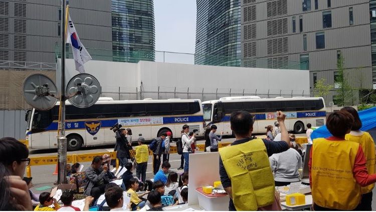 「日本大使館がかつてここにあったということを証言する意味で、少女像はこのままがいいでしょう。そして、別の場所に新しい日本大使館が建てられたら、その場所にもう一つの少女像を置けばいいんです。あるいは、日本大使館が仮住まいしているビルにずっと居続けるのなら、この空き地を平和のための公園にするのもいいでしょう。そうすれば、あのビルがここからでもよく見えるし、水曜集会も日本政府がきちんと謝罪するまで、ずっとここでできるじゃないですか」