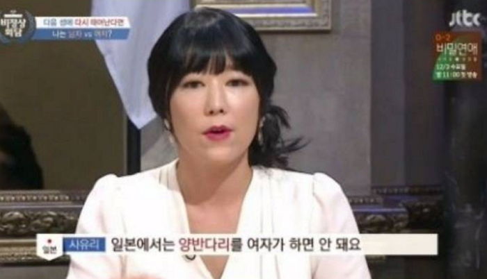 この日サユリは、「日本では女が両班足(あぐら)をしてはいけない。理由は分からない。単にしてはいけないと学んだ」と告白した。