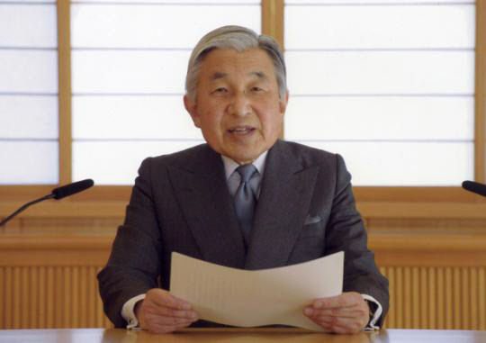 ▲東日本大地震当時、対国民テレビ演説をする明仁日王。日本宮内庁提供