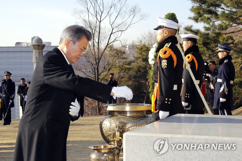 文大統領は閣議前、金九の墓を参拝。初代韓国統監を務めた伊藤博文を暗殺し死刑になった独立運動家、安重根(アン・ジュングン)や
