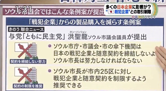 ②戦犯企業からの製品購入を減らす条例案。戦犯企業とは韓国が認定した日本企業299社