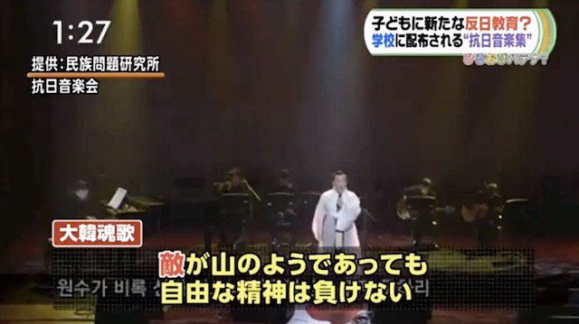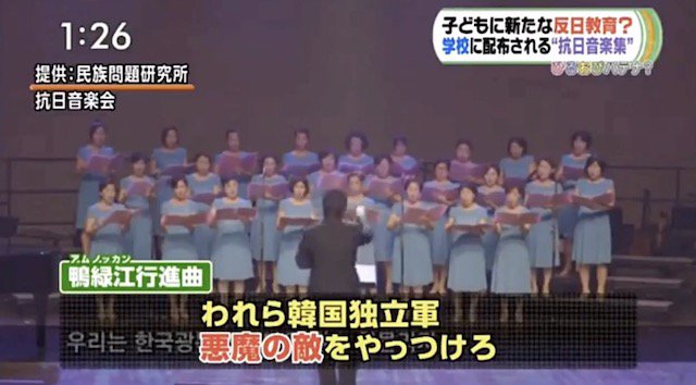 ①子供達に抗日音楽教材配布。ソウル市内全1300校に費用1千万円で無料配布。『♫悪魔の敵をやっつけろ』