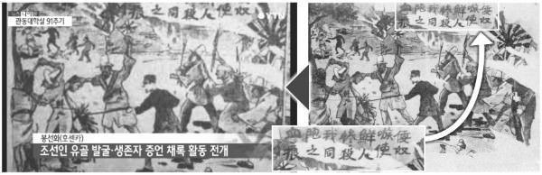 2014年9月にニュース専門テレビ局YTNが、関東大震災(1923年)時に起きた朝鮮人虐殺事件の特集番組内で、あるイラストを使用した。