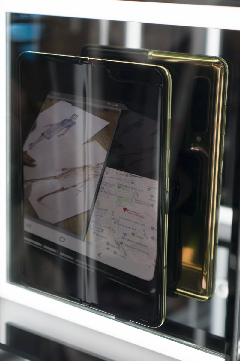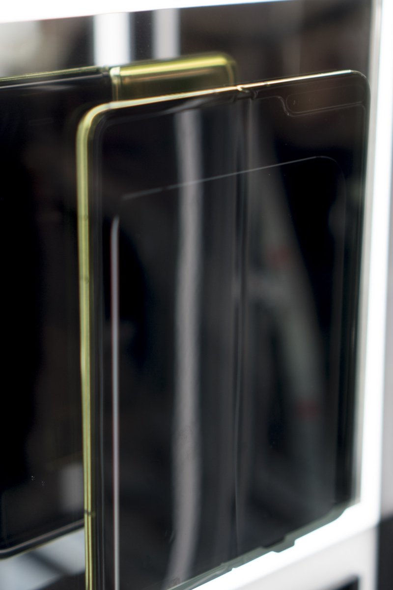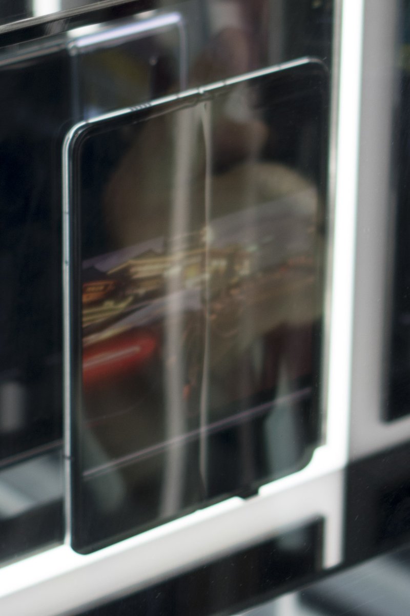 会場にいた米GizmodoのRutherford記者いわく、スクリーンにリフレクションんが入り込まないようにFalaxy Foldを撮影するのはほぼ不可能なケース状態での展示だったといいます。