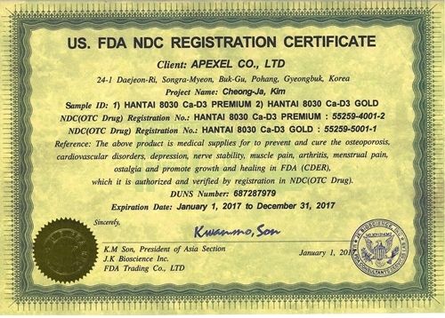 また、国内で唯一食品医薬品安全処から「世界初」と「模倣不可能」という広告文句を使っても良いという許可を受け、米国FDAから「骨粗しょう症改善および治療剤」と登録されている。