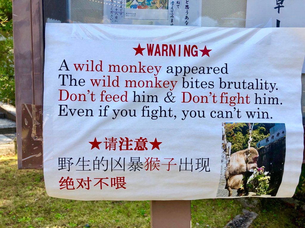 京都の寺で見かけた片言の英語で書かれた警告標識(海外の反応)海外の反応「野生の猿が出現する。野生の猿は残虐な噛み方をする。餌を与えるな&戦うな。戦っても勝てない」海外の反応をまとめました。http://pagead2.googlesyndication.com/pagead/show_ads.js続きを読む Source: 海外のお前ら 関連記事日本の幼稚園児が「今悩んでいること」が可愛くて面白い!【タイ人の反応】海外「平和だなぁ・・・。柴犬の親子が遊んでいる光景に和んだ」海外の反応日本のアニメの「現実にはありえない作画」が見れば見るほど笑ってしまうwww【タイ人の反応】海外「素晴らしい」日本がウクライナ避難民の為に法整備まですることに海外びっくり仰天!(海外の反応)8都県のモスバーガーで28人が食中毒の症状(海外の反応)今更ながらコーヒーの効能で盛り上がる海外(海外の反応)投稿ナビゲーション日本の漫画『はたらく細胞BLACK』がセクシーなキャラと大人向けの内容で面白そう!【タイ人の反応】海外「こういうのを見ると日本はさすがだと感心するね・・・」海外の反応