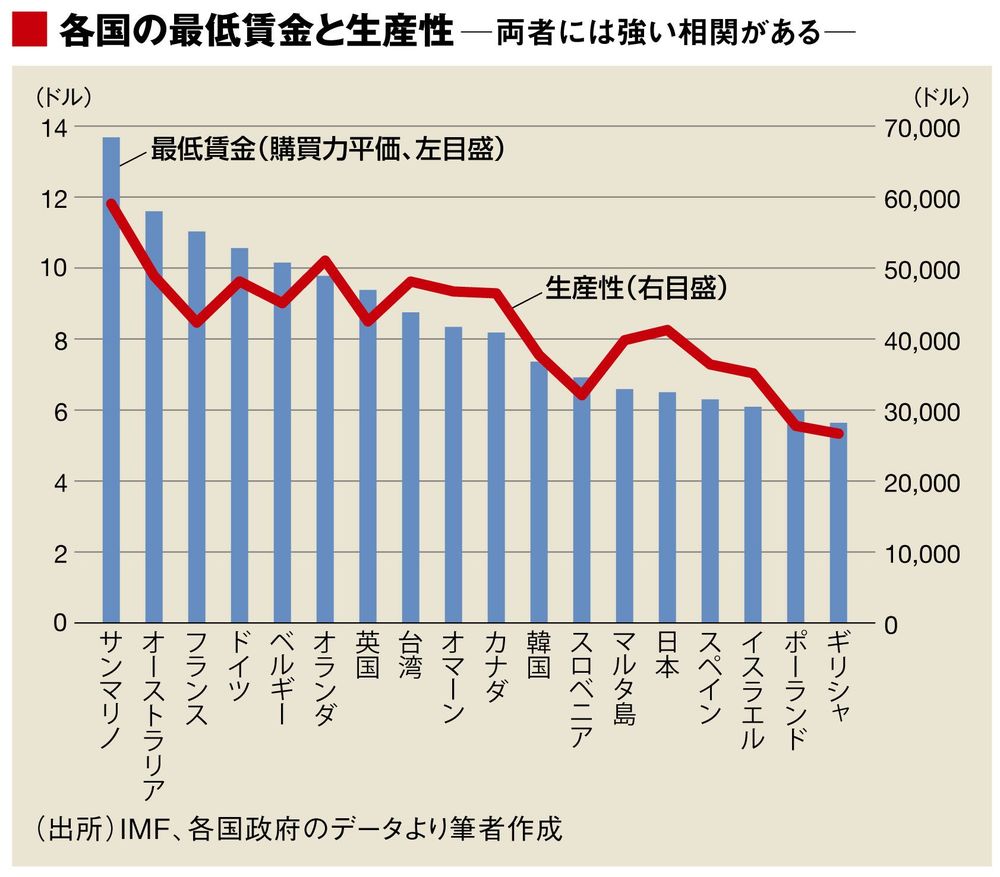 ■最低賃金と生産性には強い相関がある