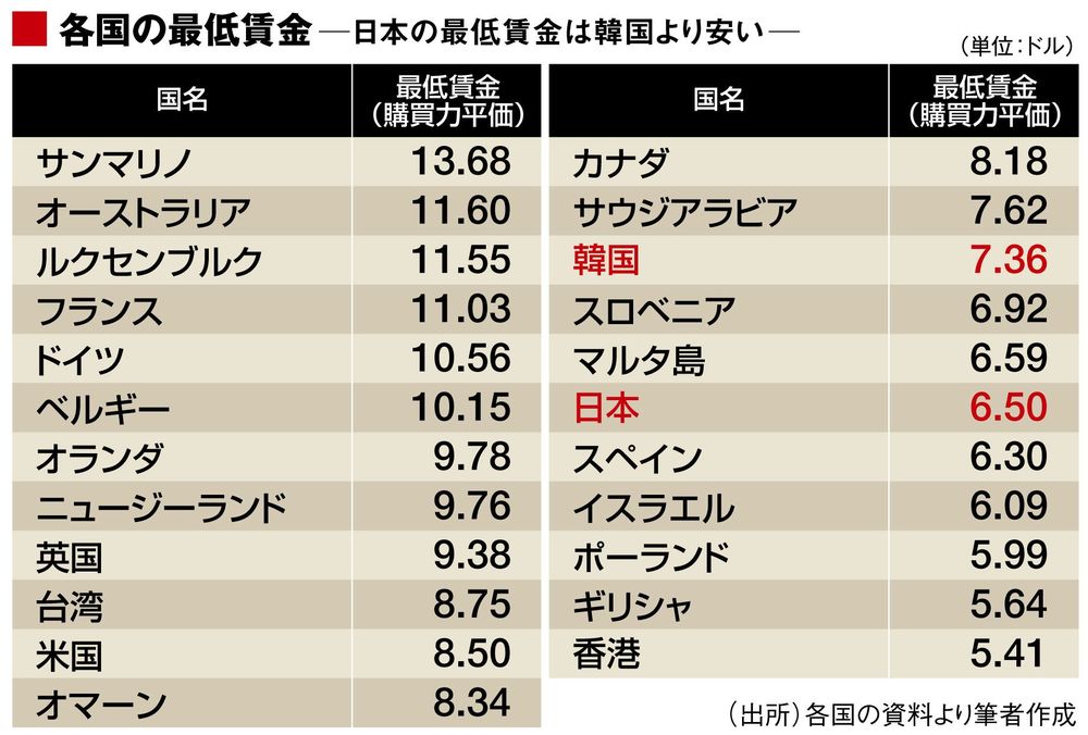 政府は、この事実をどうとらえているのでしょうか。本当は日本の人材など、大したことがないとでも思っているのでしょうか。高く評価されているのは、「何かの間違い」とでも思っているのでしょうか。日本人の人材の質は、第32位の韓国よりも低いと思っているのでしょうか。さもなければ、最低賃金が韓国より低く設定されている理由がわかりません。
