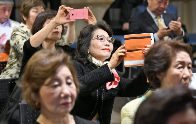 大阪市北区の大阪韓国文化院には在阪韓国総領事や在日コリアンら約50人が集まり、大型スクリーンで両首脳の会談を見つめた。午前9時30分ごろ、金正恩委員長と文在寅大統領が境界線で握手を交わすと、会場から長い拍手がわき起こった。