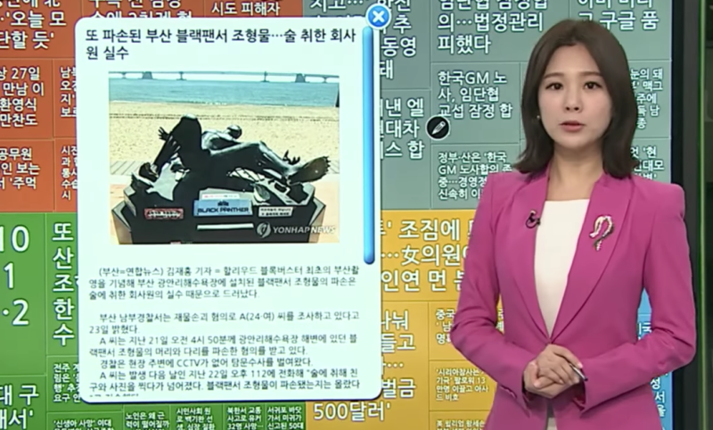 ハリウッド映画『ブラックパンサー』の釜山(プサン)での撮影を記念して釜山広安里(クァンアルリ)に設置されていた記念造形物が破損した状態で見つかった。3月にも釜山光復路(クァンブンノ)に設置された造形物で同様の破損事件があり、今回で二度目になる。以下略(中央日報)