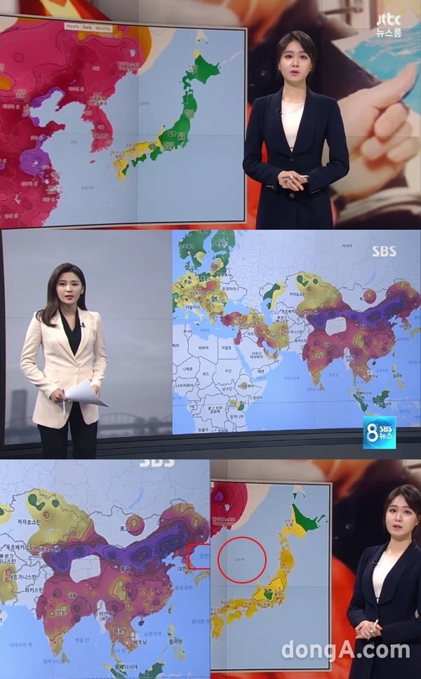 韓国の2つのテレビ局が27日に中国の大気汚染の深刻さを報じている際に表示された地図に「東海」とすべきところを