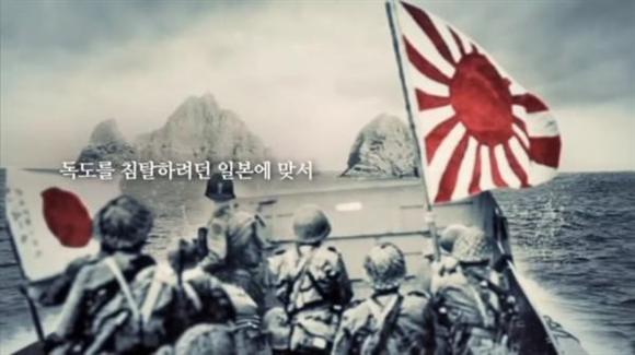 KBS(韓国の公共放送)が2015年1月に放映した、第二次大戦後の竹島の歴史を紹介する教養番組の予告編で使った写真がある。そこには「独島を奪おうとした日本に~」の字幕とともに、赤く着色された旭日旗を掲げ竹島を目指す日本軍らしき一団が見える。