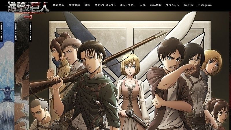 ▲TVアニメ「進撃の巨人」Season 3 公式ホームページ