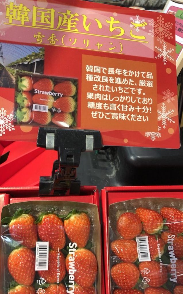 「日本産いちご × 日本産いちご = 韓国産いちご」