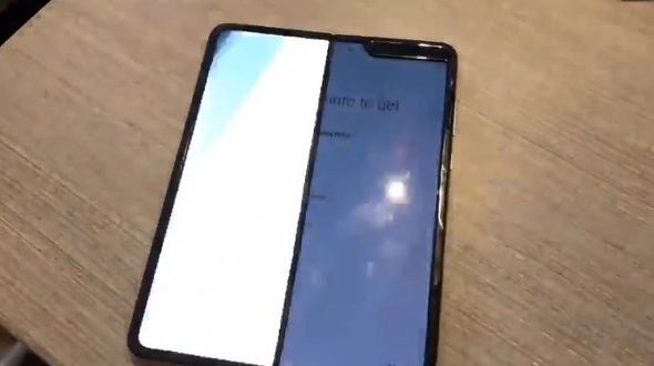 (ディスプレイの左半分が真っ白になったGalaxy Fold)