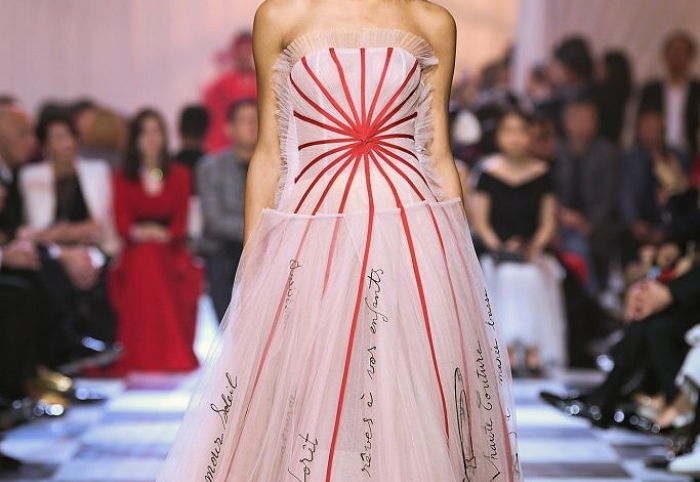 婦人服ラインのチーフデザイナーであるマリア・グラツィア・キウリ(Maria Grazia Chiuri)は、「レッドカラーで幸運を象徴した」と意図を明らかにした。