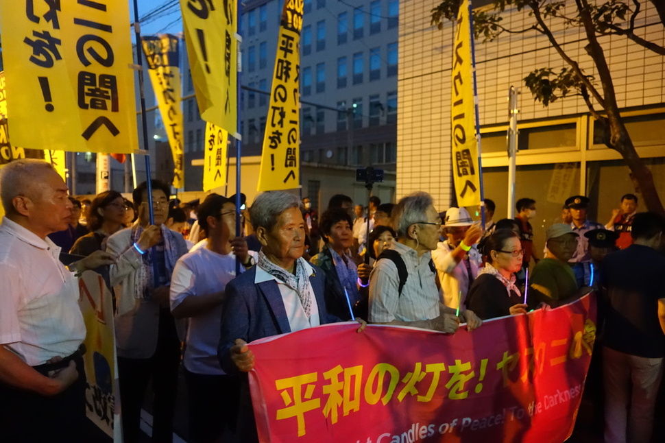 韓国と日本の市民団体が日本の敗戦73年を4日後に控えた今日(たぶん11日)、東京の靖国神社の周辺で平和を促すろうそく行進をしました。