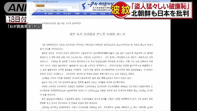 韓国の国会議長の発言を巡る日本の対応を北朝鮮も「盗人猛々(たけだけ)しい」と批判しました。