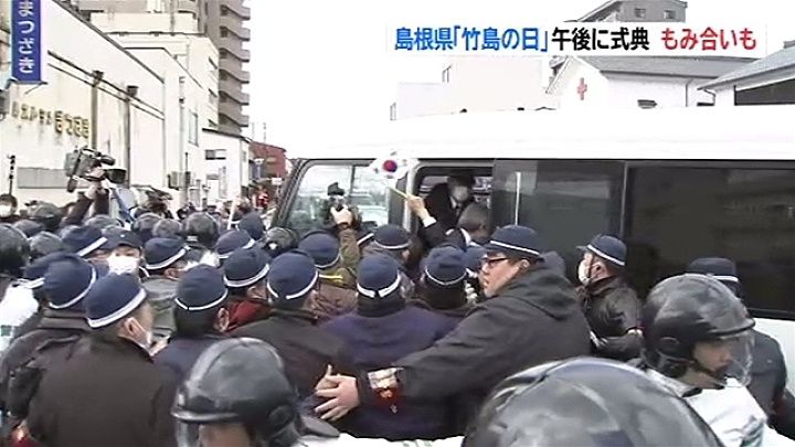島根県「竹島の日」で式典、会場近くでもみ合いも