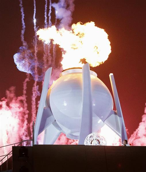 「メガネ先輩」が聖火を点灯、スタジアムに歓声