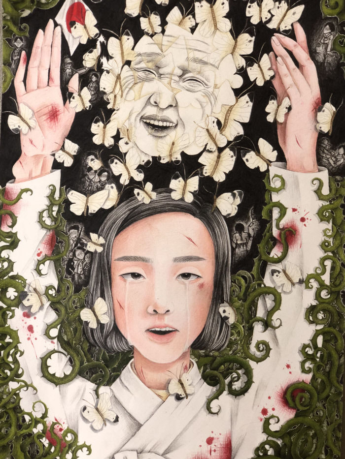 【ソウル聯合ニュース】旧日本軍の慰安婦問題について考え正しい歴史認識を持つという趣旨で、韓国で2014年に始まった青少年の作品を対象にした公募展が今年も開かれ、最優秀賞の首相賞に女子中学生リュ・セジョンさんの美術作品「ハルモニ(おばあさん)のほほ笑み」が選ばれた。女性家族部は26日、ソウルの白凡金九記念館で授賞式を開催する。