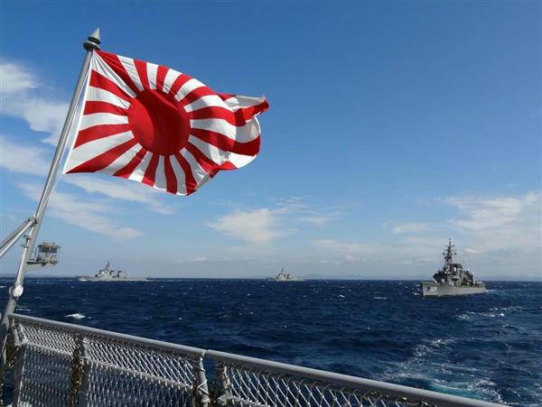 ▲ 海上自衛隊の艦艇が掲げる「旭日旗」は、決して戦犯旗ではない