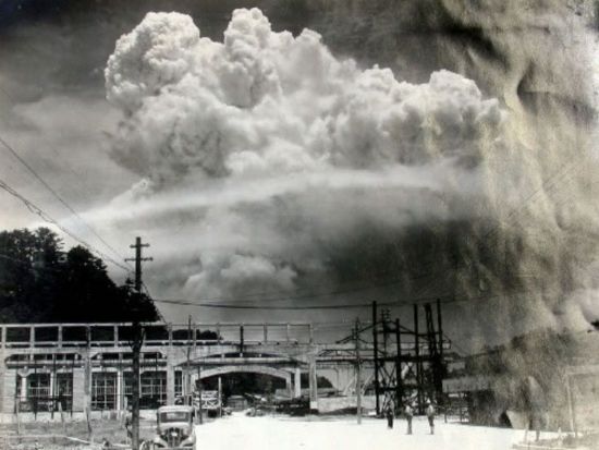▲1945年8月9日、長崎原爆投下直後に発生した巨大なトルネード。(写真=長崎市ホームページ)
