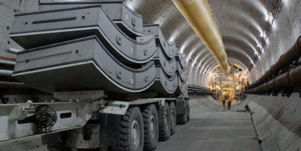 トルコのユーラシア海底トンネル内部で、車両を利用して建設機械を移している。 / SK建設提供