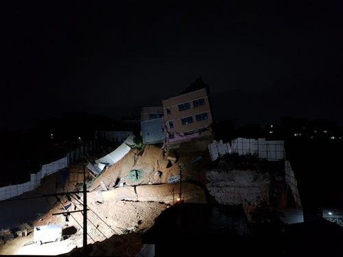 消防署関係者は「現場指揮所を設置した。建物が傾いている状態なので事故現場周辺を統制して状況を見守っている」と話した。