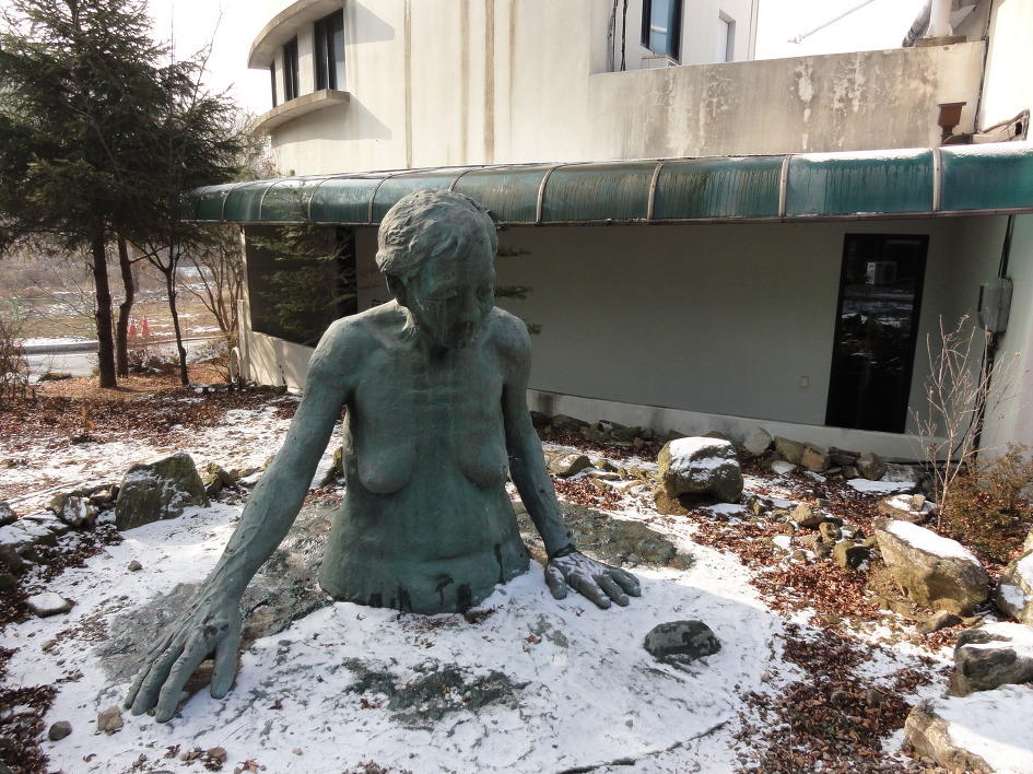 韓国事情に詳しい文筆人の但馬オサム氏は「共通していることは具象的であることです。韓国人は抽象表現よりも圧倒的に具象表現を好むようです。それは彼らの恨みの文化にも起因していると思われます。元慰安婦のおばあさんの収容施設ナヌムの家の中庭にある“大地の女”と題したブロンズの像は、地面の中から上半身をのぞかせている全裸の老婆の像なのですが、見た目のインパクトは絶大です」。