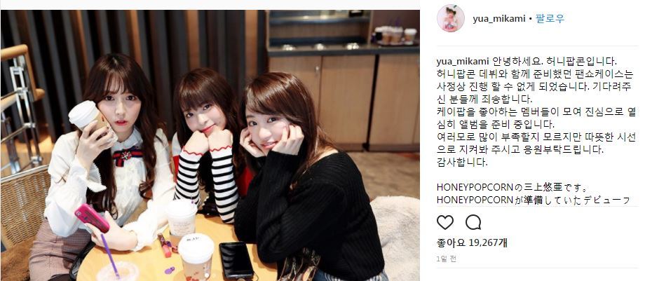 三上悠亜は去る10日に自身のSNSを通じ、「HONEY POPCORNのデビューと共に準備していたファンショーケースは事情により中止になりました」と伝えた。